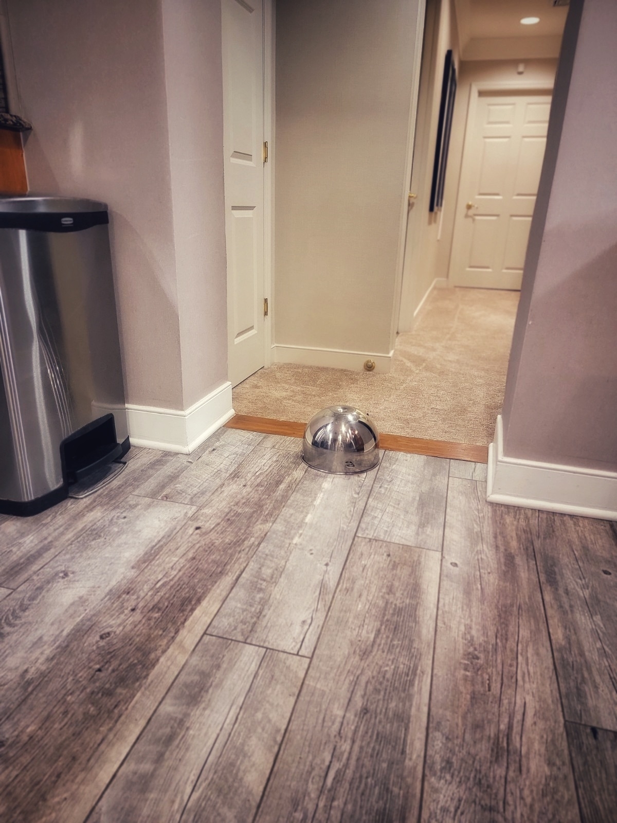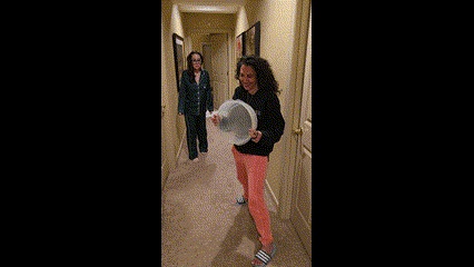 We hunt. It’s a large area, lots of rooms. Kat using the flashlight on her phone to look under Kayla’s bed. After a thorough search, we find no mouse, and conclude it’s gone into the (locked) utility room, and deduce we disturbed it that day because several of us did laundry.