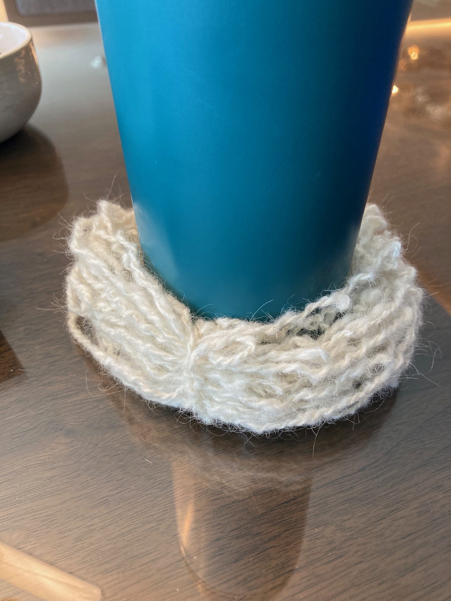 In no time she’s spun some into yarn and crochet some to show the staff.