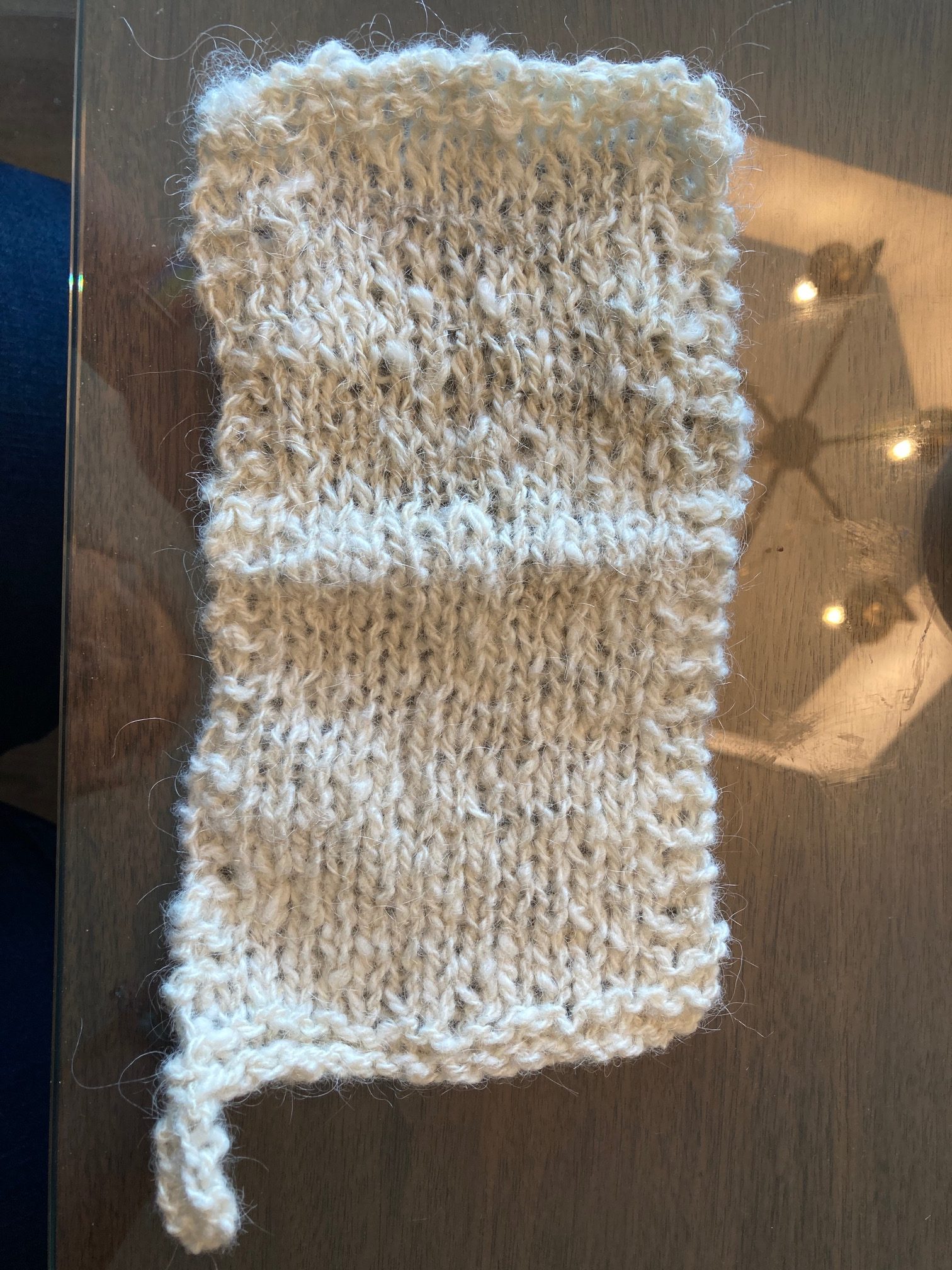 Kat sits and knits. She’s making knitted—soft yarn—breast inserts for women who’ve had mastectomies. [Ed note: for more info go to Knitted Knockers.]