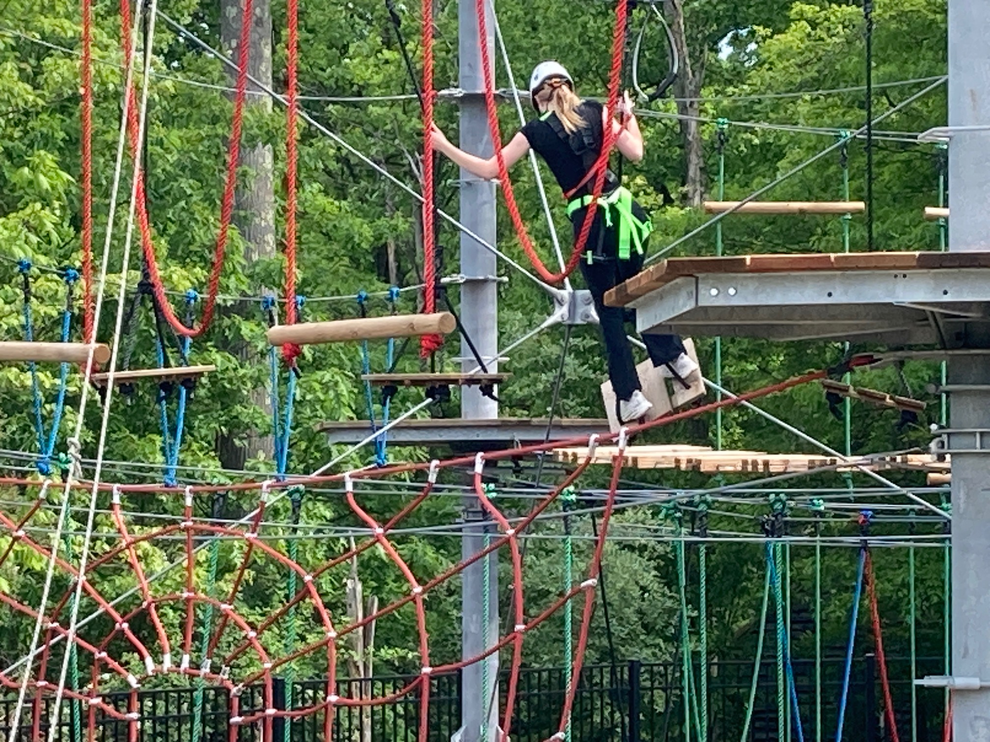 They’re down at the newly improved rope’s course, a plan I completely missed hearing about the night before.