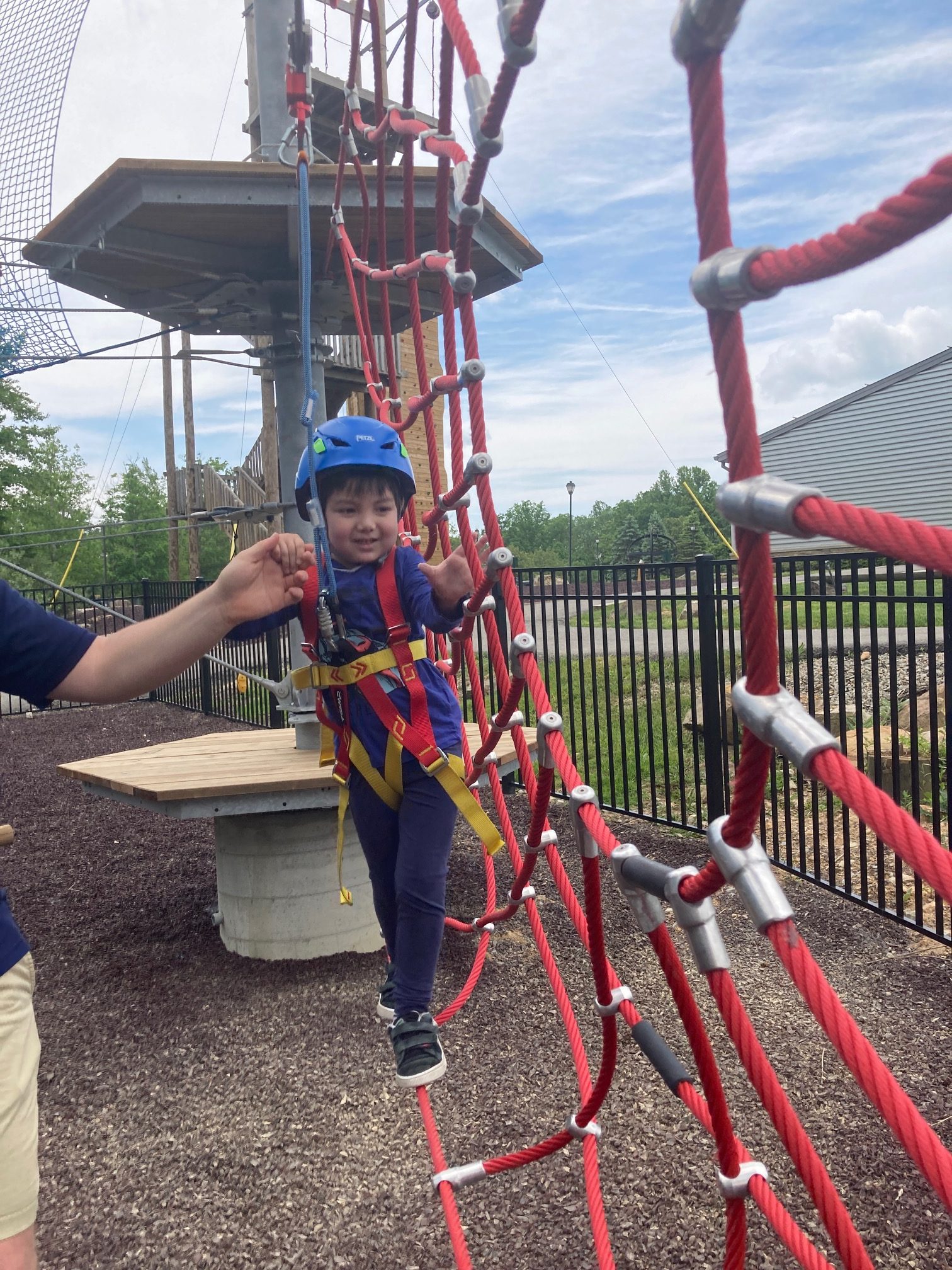 I missed Kayla on the adult course, which she says is harder than the one they had before. Then Griffin tackles the kid’s course.