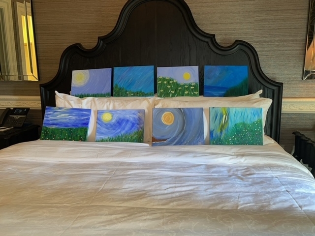 Wonderful Spa setting, spacious rooms idea for Griffin to run with his beloved lawnmower, such lovely fun and games for you all. Loved the paintings. 🤗 🌈 Always such fun reading your adventures in your time out. 🤗 Stay Safe and thank you for sharing your precious family time with your readers. 🤗.