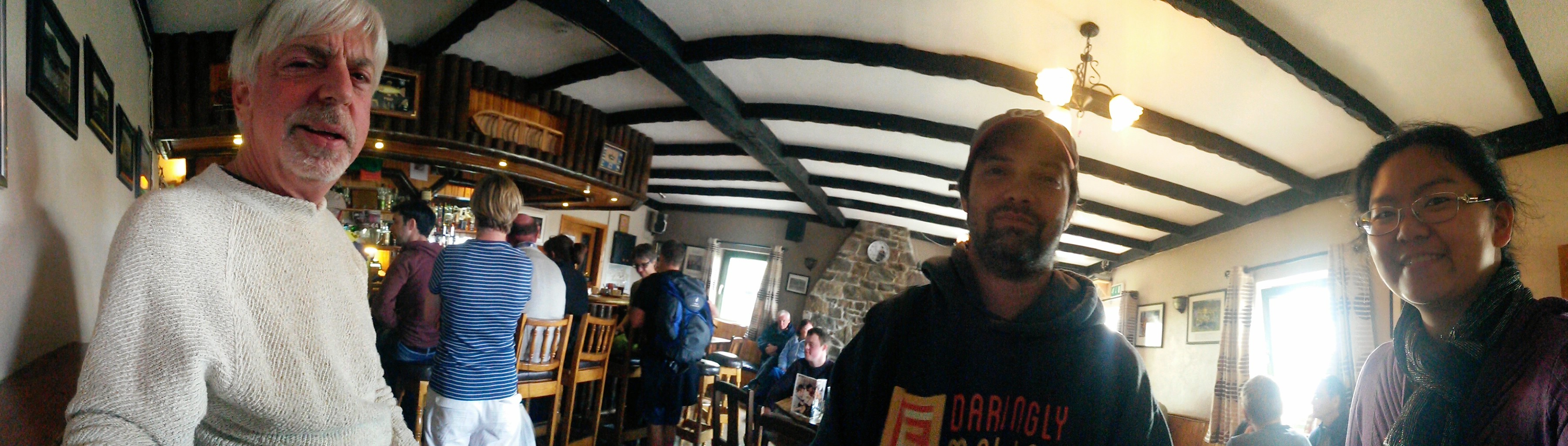 Rain came and went there as it did here, and they sit out some with lunch in one of the restaurants.