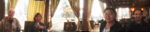 Then it’s time for BW and I to head off for our treatments. What a lovely set-up, pretty white tents, open in the back so the view and the breeze are part of the experience. I got a rose clay body mask, and I swear by the end my skin felt like butter. I expect without the smoke the view would have been astonishing, but even with it, it’s wonderful. Sort of surreal and spooky.